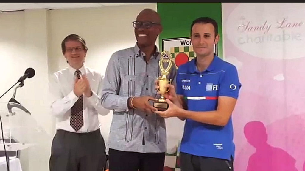 Dopodiché si dedica quasi completamente alla dama inglese, quella che gli può permettere, come poi è avvenuto, di calcare palcoscenici prestigiosi in tutto il mondo. Riesce così ad ottenere il secondo posto, e quindi medaglia d’argento, dietro a Michele Borghetti, nel challenge del 2015 disputato nel Galles e la medaglia di bronzo nelle Barbados (un posto che gli è favorevole, come si vedrà ancora di più nel 2019) nel challenge del 2018.