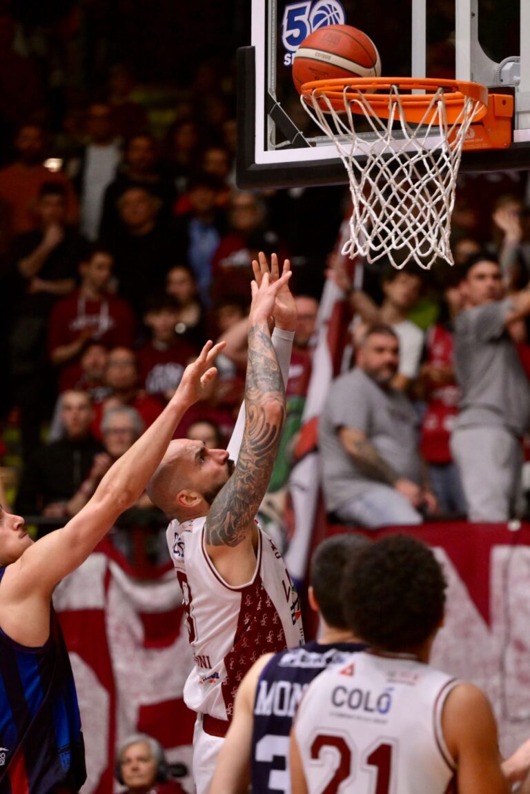 Niente da fare: troppo forte la Real Sebastiani Rieti per la Bi.Emme Libertas che ha lottato senza venire a capo di una partita che l’ha sempre vista rincorrere gli avversari. Gran bella realtà quella blugranata: grande atletismo, reattività a rimbalzo (40 – di cui 17 in attacco – a 28) e grande precisione dall’arco. Non tragga in inganno il 13/30. La percentuale, comunque buonissima, è stata sporcata solo nel finale perché per tutta la partita Rieti ha viaggiato sopra il 50% da 3. La Libertas ha provato a restare in scia, ma dopo il (decisivo) break del primo quarto (14-27) al massimo è tornata a -5 (29-34) grazie a due triple di Filloy. Poi Rieti ha controllato la partita e i tentativi di recupero degli Amaranto.