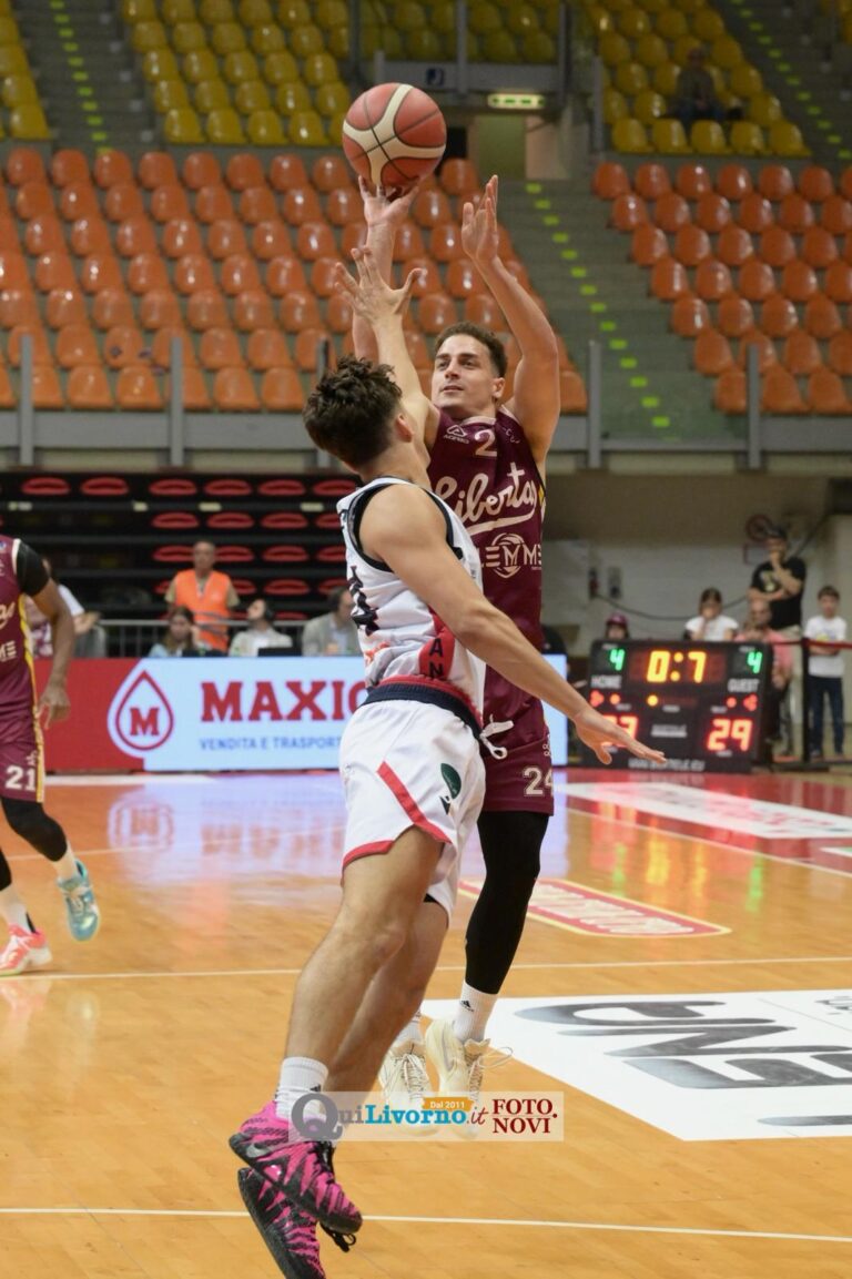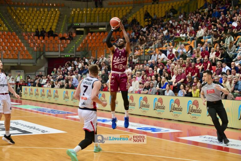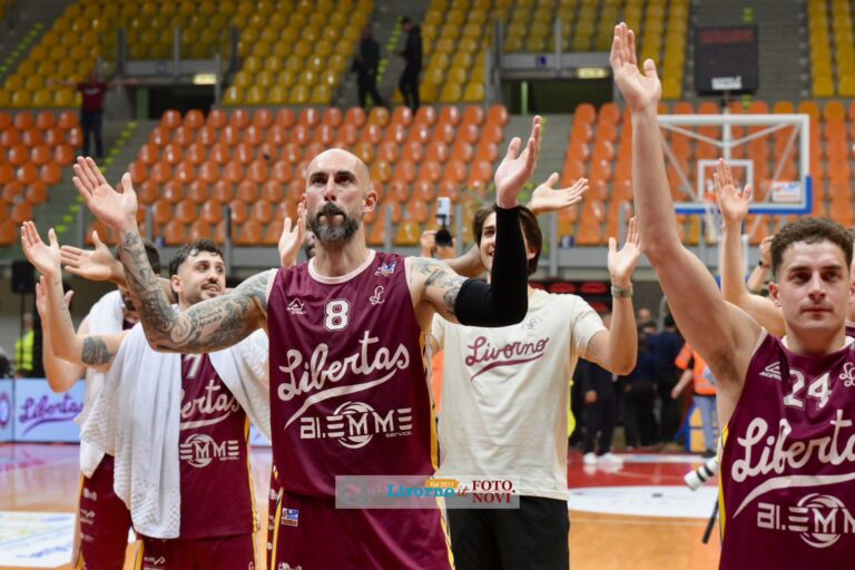 Successo netto, meritato e costruito con autorità lungo tutti i quaranta minuti: la Libertas Livorno supera l’Urania Milano 102-84 al Modigliani Forum e stacca il pass per il turno successivo dei play-in, trascinata da un attacco brillante e da un pubblico caldissimo (clicca qui per il tabellino del match).