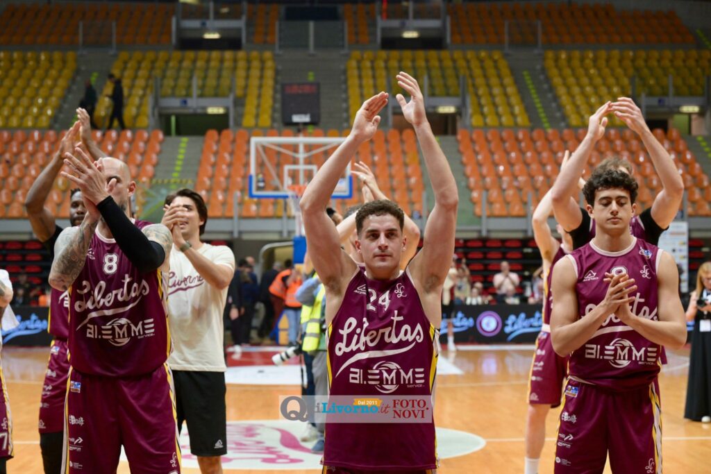 Nel finale c’è spazio per la gestione e per lo spettacolo: Penna e Piccoli infiammano il pubblico, mentre Urania segna con Amato, Sabatini e D’Almeida senza però mai riaprire i giochi. Gli ultimi minuti scorrono tra gli applausi del Modigliani, fino al definitivo 102-84 che fa esplodere la festa amaranto. Una vittoria costruita con qualità offensiva, solidità a rimbalzo e grande intensità nei momenti chiave: la Libertas avanza con pieno merito, spinta da un Modigliani Forum in versione playoff. E il sogno continua. Domenica 3 maggio (palla a due ore 19) tappa a Rimini contro la squadra di Sandro Dell’Agnello per continuare l’avventura e agguantare i playoff.