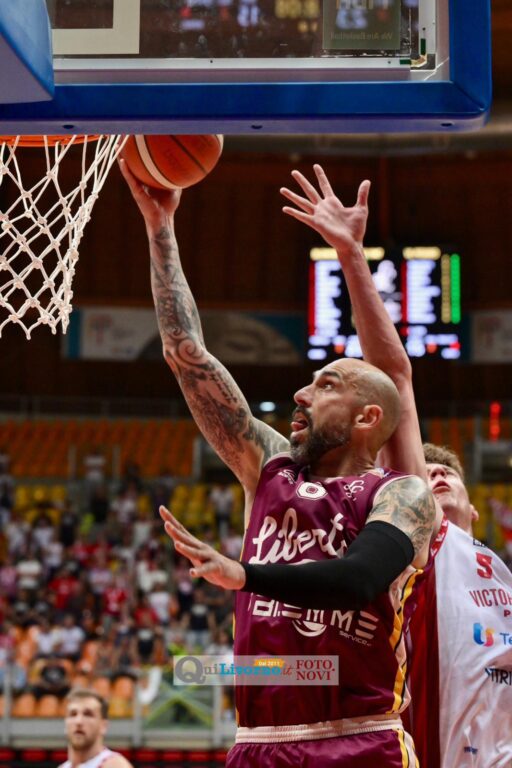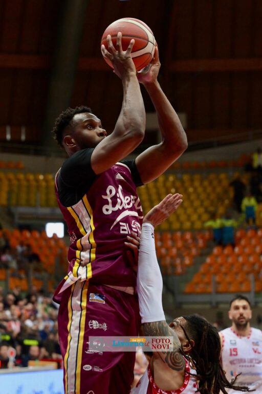 La Libertas riparte avanti di dieci e prova subito ad allungare con Tiby, che inaugura il quarto con una tripla e diventa il riferimento offensivo degli amaranto. Il lungo continua a colpire anche in post, guadagnandosi falli e viaggi in lunetta, mentre Pesaro risponde con Tambone, a segno sia dall’arco che ai liberi.