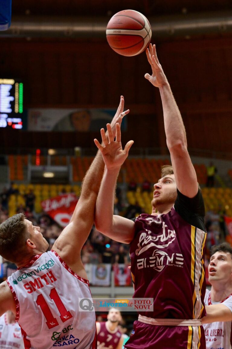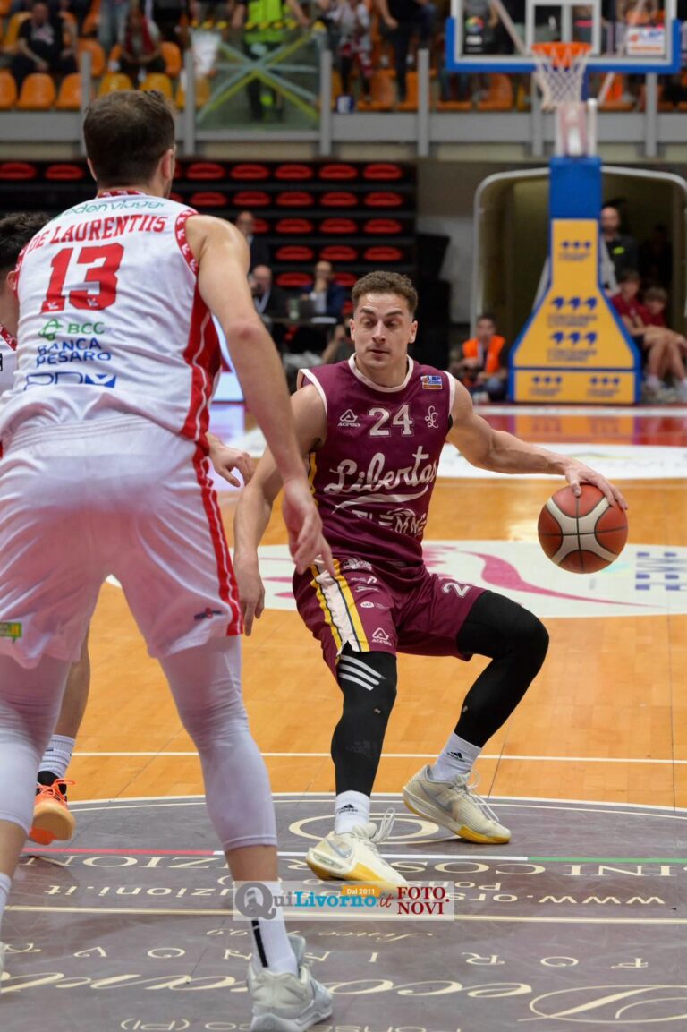 È il momento più delicato per Livorno, che però risponde con carattere: Tiby è glaciale dalla lunetta, la difesa sale di tono e arrivano recuperi pesanti. Un tecnico a Tambone porta un libero agli amaranto, poi Possamai e Fantoni colpiscono da sotto su buone letture offensive. Valentini inventa per Lombardi il nuovo allungo, mentre la Libertas continua a punire le palle perse di Pesaro.