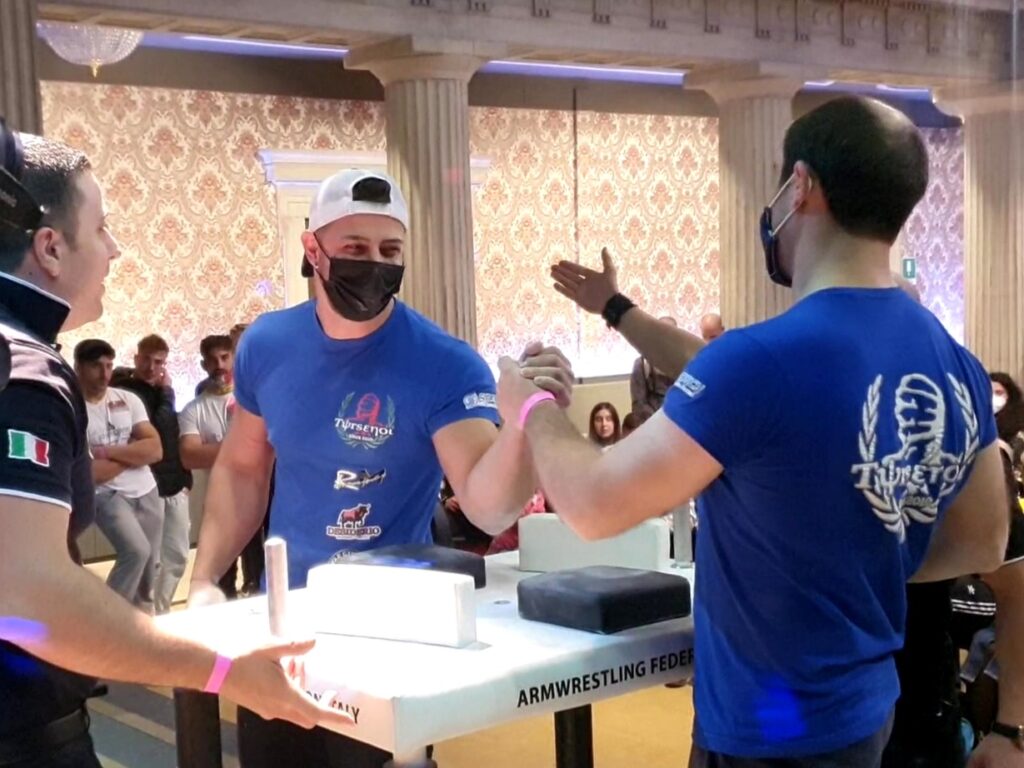 Veniamo adesso alle categorie Master oltre 40 anni dove troviamo un fortissimo Claudio Baronti che conquista l’oro nella difficile categoria dei 100 kg sinistro vincendo una spettacolare finale davvero combattuta. Oro anche per il compagno di squadra Roberto Cervelli che contro ogni pronostico riesce a sconfiggere un veterano rinomato che da anni deteneva il titolo della categoria 90 kg destro, l’impresa non riesce nei sinistri dove però ottiene comunque un ottimo bronzo. Argento per il preparato Vincenzo Petese nella categoria 70kg destro e nella 100kg destro per il coach della squadra al rientro dopo 3 anni di stop dovuti ad un infortunio alla mano. Nella categoria Gran Master oltre 50 anni +90 kg un ritrovato Paolo Vincenti si porta a casa il titolo dimostrando che ha sempre molto da dare in questo sport.