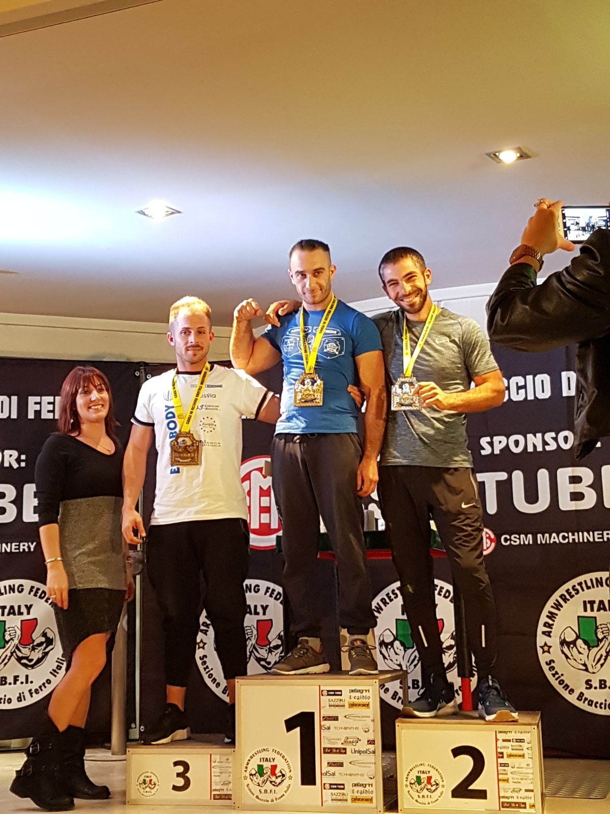 Paolo Dini passato da poco nei senior riesce ad ottenere un bronzo col braccio destro nella categoria +110 kg e l’argento col braccio sinistro, poi stupisce piazzandosi in quarta posizione assoluta sempre con questo braccio. E’ da considerarsi un grande risultato valutando che si allena solo da un anno per questa disciplina.
