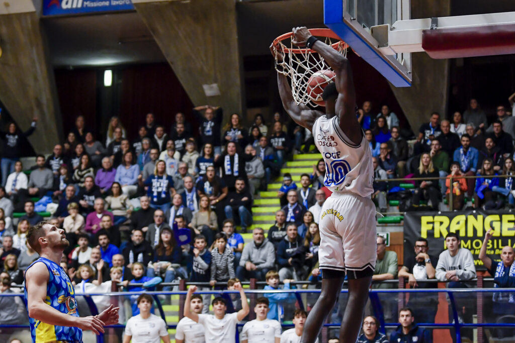 In foto fornita gentilmente dall'Ufficio Stampa della Pielle Livorno una schiacciata di Diouf al PalaMacchia