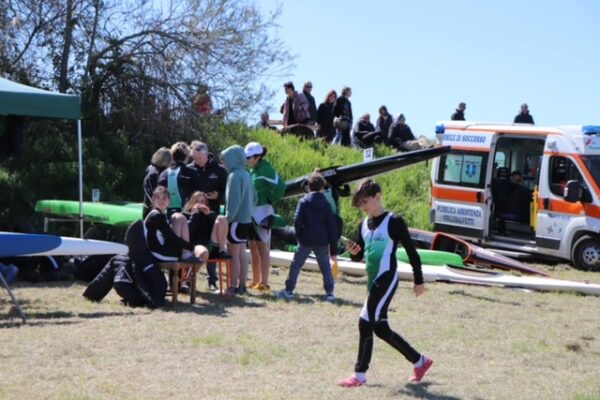 Presenti tutte le società toscane con ben 122 Atleti per un totale di 195 Atleti gara e ben 166 equipaggi. Gli atleti della società stagnina, dopo le belle prove a Milano di sette giorni fa, hanno confermato lo splendido stato di forma conquistando ben 6 titoli di Campione Regionale con Moneta Matteo e Di Luozzo Soemy nel K1 e con Reccanello /Dalla Valle nel K2 Ragazzi 1° Anno, Del Gratta Sara nel K1 Junior, Colantonio/Penco nel K2 Ragazzi, Mancini Gianluca K1 Master D. Secondi Posti per Mazzara Simone nel K1 Junior e Ambrosini Cristian nel K1 Ragazzi .Le gare Canoa Giovani, dedicate agli allievi e Cadetti, iniziavano con la distanza dei 200 mt, dove gli atleti di casa conquistavano ben 6 primi posti con Manicagli Gabriele, Dalla Valle Diana, Bacci Vittoria, Mancini Diego e Menicagli Vittoria, secondo posto per Giannini Mirko al debutto, per Gratta Marta e bronzo per Malloggi Bianca nel K1, mentre nel K2 la coppia Bacci/Del Gratta conquistava un altro splendido primo posto. La manifestazione si concludeva con le gare sulla distanza dei 2000 mt, ed il copione non cambiava, con Dalla Valle, Bacci prime nel K1, Del Gratta/Malloggi prime nel K2, ed i fratelli Menicagli entrambi secondi nelle rispettive prove. Alla fine della giornata si registrava un bottino totale di ben 6 Titoli Regionali conditi da ben 16 ori, 6 argento e 1 bronzo. Da sottolineare la bellissima gara di Carli Gabriele al suo debutto dopo pochissimo tempo in Canoa, con uno sfortunato 4° posto nei 200 mt e 5° posto nei 2000 mt.