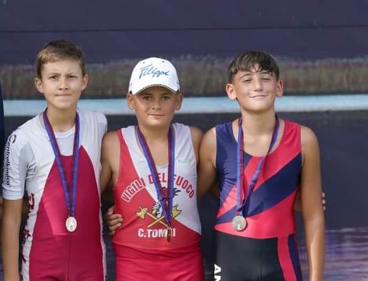 Dopo qualche anno, il blasonato palmares del Gruppo Sportivo VVF Tomei Sez. Canottaggio, torna ad essere arricchito con un titolo italiano di canottaggio grazie ad Alberto Magagnini ed Enrico Sabatini, equipaggio due senza under 18, che agguanta l’oro con un travolgente serrate relegando gli ottimi equipaggi di Flora e Sanremo rispettivamente al secondo e terzo posto.