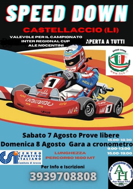 Sabato 7 agosto e domenica 8 agosto si svolgerà un interessantissimo evento sportivo al Castellaccio. Speed Down Gp Livorno è il nome della gara valevole per il campionato regionale intitolata a Alessandro Nocentini compianto presidente della FICS. Una gara su strada che consiste nella discesa a cronometro senza motore di kart, trike, skate organizzata dall’Associazione Asso House del presidente Mino Marrone e dei soci Piero Ciantelli ed Estevan Martelli. La gara è patrocinata dalla FICS.
