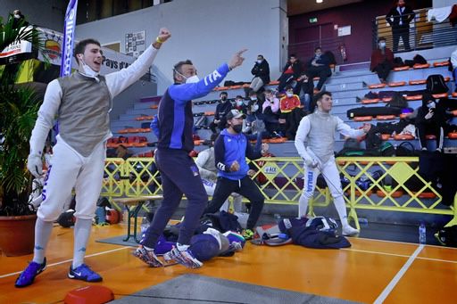 Prova esaltante del fiorettista Giulio Lombardi che conquista l'oro a squadra nella prova di Coppa del Mondo in Francia con il maestro Beppe Pierucci a fondo pedana alla sua prima uscita ufficiale nello staff azzurro