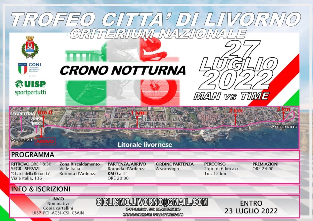 Il fascino di una gara in notturna in sella a due ruote, sul lungomare livornese. È il Trofeo Città di Livorno, gara ciclistica in programma per mercoledì 27 luglio a partire dalle 20.30, con ritrovo e partenza dalla Rotonda d’Ardenza. È l’Asd Cicli Falaschi a organizzare la manifestazione, con il supporto tecnico del Comitato Uisp Terre Etrusco-Labroniche e il patrocinio del Comune di Livorno. Un numero cospicuo di partecipanti, anche da fuori della Toscana, è atteso per questo appuntamento che vale come Criterium Nazionale. Questo evento è nato per ricordare Sergio Marchetti e Mario Romboli, due storici dirigenti della Uisp per il mondo del ciclismo livornese.