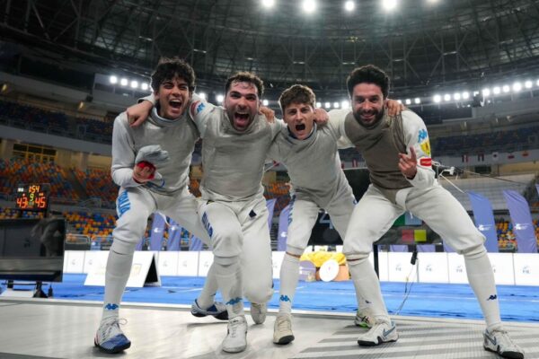 Il 19 aprile Lombardi è tornato in pedana nella prova a squadre, convocato nel quartetto azzurro insieme a Macchi, Bianchi e Marini. L’Italia, già inserita direttamente nel tabellone principale, ha disputato una gara di grande solidità, superando con autorità Taipei per 45-20 e la Cina per 45-28, con Lombardi protagonista anche nei match di chiusura.