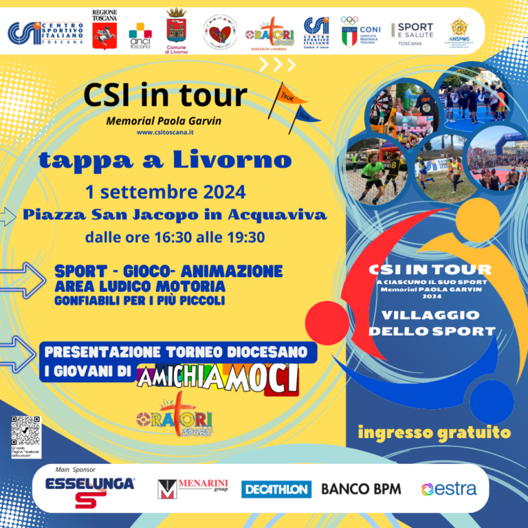 Csi in Tour – A ciascuno il suo sport si svolgerà domenica 1° settembre dalle 16,30 alle 19, in Piazza San Jacopo in Acquaviva. I giochi gonfiabili saranno a disposizione di tutti i bambini presenti, utilizzabili gratuitamente.