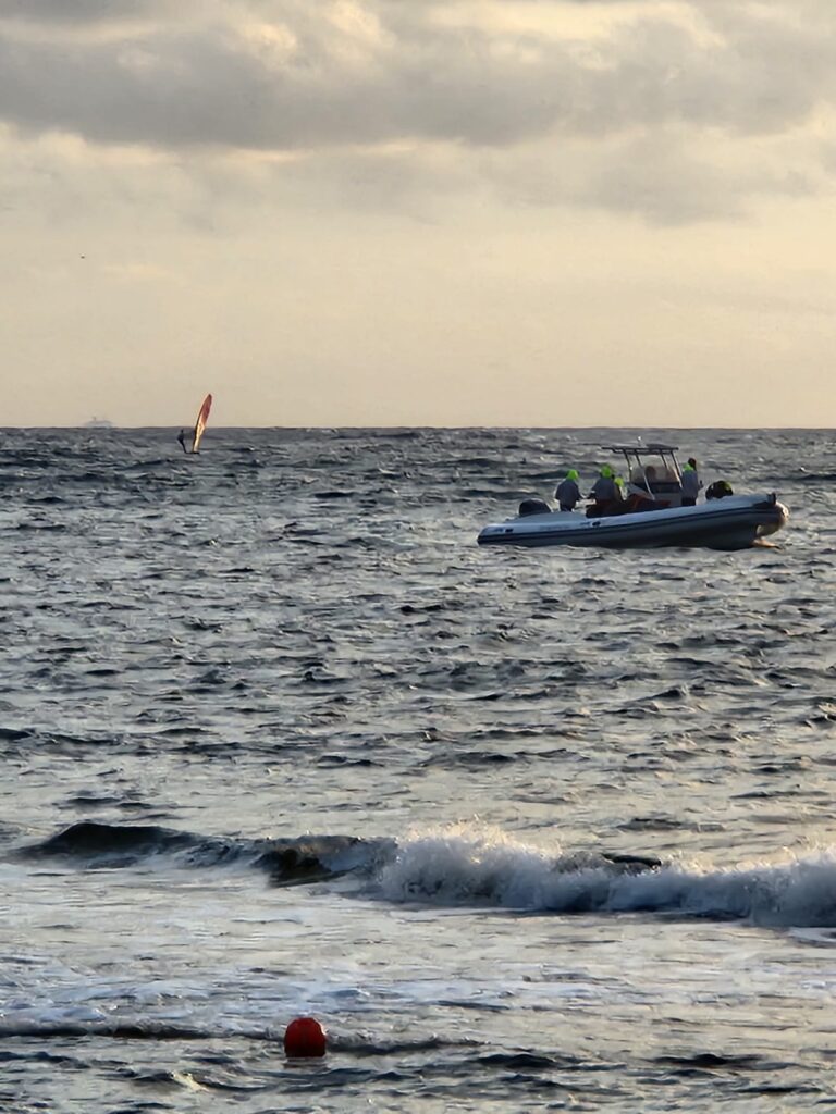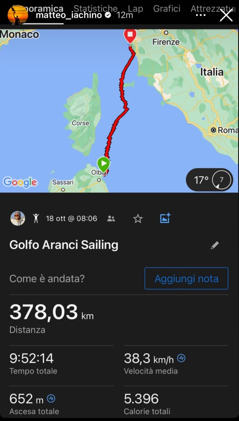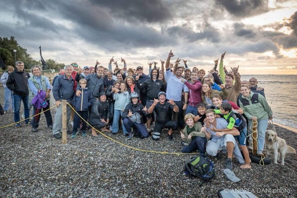 Matteo approfittando della previsione favorevole (vento da sud) ha compiuto la lunga traversata per una lunghezza di 278 chilometri circa (150 miglia nautiche). Gli amici del windsurf labronico hanno aspettato il campione insieme a David Gabbriellini, presidente della Windsurf Livorno, e hanno compiuto insieme a lui l’ultimo miglio in acqua per accompagnarlo sulla spiaggia.