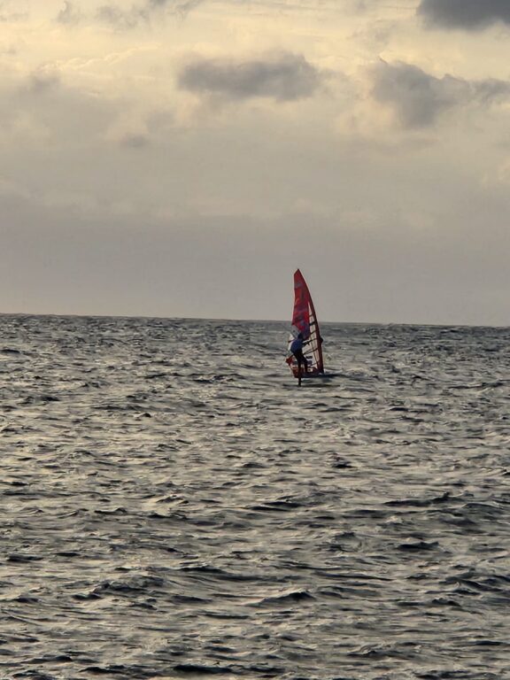 Il campione del mondo di Windsurf, Matteo Iachino, è partito da Golfo Aranci per arrivare in continente con meta di arrivo proprio al Centro Livorno Surf 3 Ponti con il suo windsurf foil per un totale di circa 278 chilometri