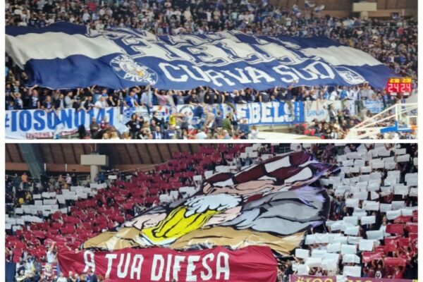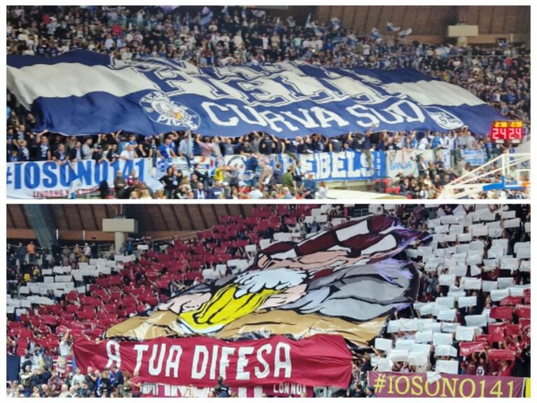 C’è qualcosa per cui vale la pena vivere di persona un derby sui gradoni di un palazzetto gremito: lo spettacolo nello spettacolo, lo show degli show: le curve dei due schieramenti.