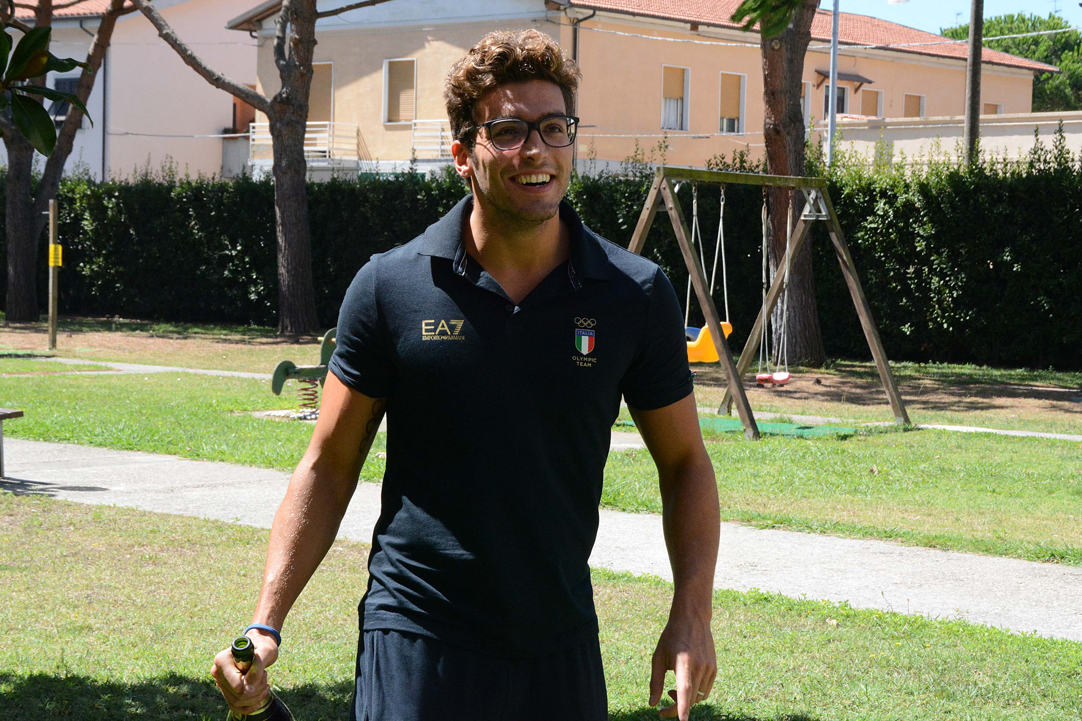 Poi c’è il momento dello champagne stappato con i bicchieri al cielo e l’inno di Mameli che un condomino ha sparato a tutto volume tramite una cassa di uno stereo portata in giardino da casa. Lo stesso inno che Gabriele insieme a Gregorio Paltrinieri ha ascoltato sul podio la notte tra sabato e domenica quando il livornese portava a casa il secondo bronzo in pochi giorni e stavolta nei 1500.