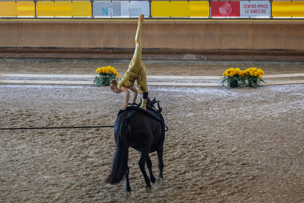 La diciassettenne labronica è ormai al suo nono anno di volteggio e insieme a Bambola, il suo cavallo con il quale ha ormai una perfetta simbiosi, ha vinto importanti premi e campionati nazionali.