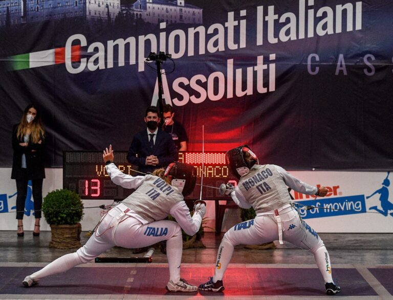 Beatrice Monaco per me è una sorella. È la persona a cui voglio più bene. Viviamo insieme la scherma da una vita. Avevamo una bottiglia di vino da stappare se ci fossimo ritrovate in finale. È andata così”, le parole di Alice Volpi dopo il terzo titolo tricolore consecutivo, anche se di mezzo c’è stato lo stop forzato dell’attività agonistica nel 2020 a causa della pandemia. “Era un bel banco di prova. Una gara a cui tenevo molto – ha detto ancora la vincitrice –. Ci avevo preso gusto per due volte a vincere gli Assoluti e volevo ripetermi. Ho fatto i conti con la fatica. È stata una giornata importante, perché lo stimolo che dà una gara non c’è in allenamento. Ho espresso una bella scherma, fisicamente dovrò lavorare ma sono davvero felice del risultato”.