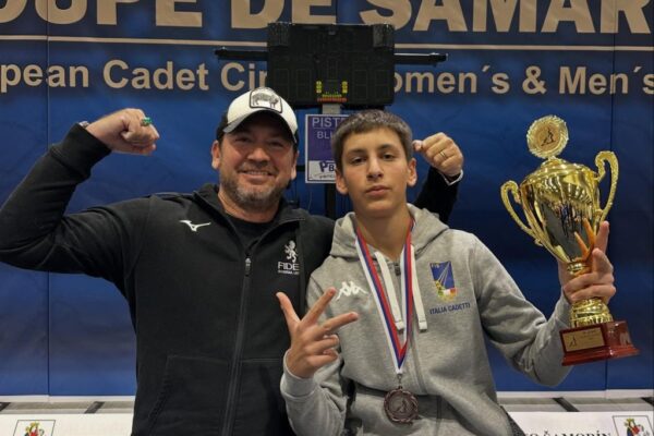 Weekend da incorniciare per la scherma azzurra e, soprattutto, per Livorno. Al Circuito Europeo Under 17 di fioretto, disputato a Samorin (Slovacchia), il giovane schermidore Giovanni Pierucci – portacolori del Fides Livorno allenato dal padre Beppe Pierucci, nella foto esultante accanto al figlio – ha centrato una splendida medaglia di bronzo, confermandosi tra i migliori prospetti della specialità a livello internazionale.
