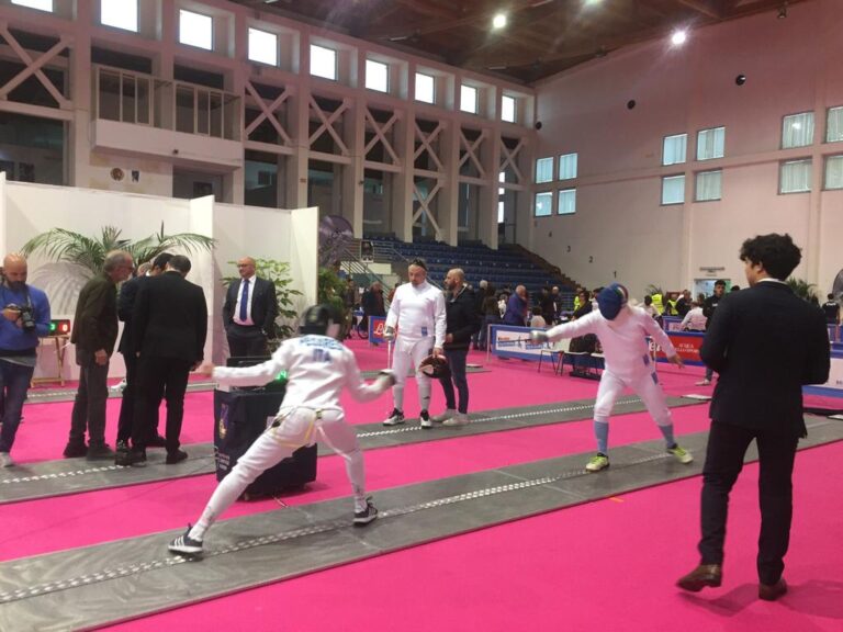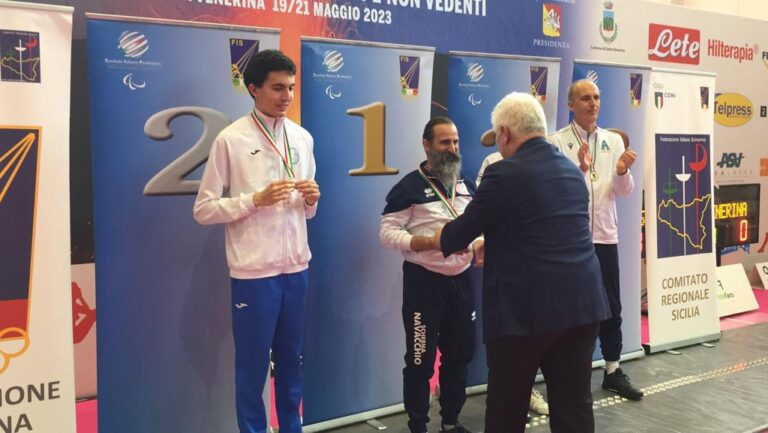 Ha 50 anni ed è solo pochi mesi che ha preso la spada in mano. Ma al collo è già riuscito a mettersi la medaglia di campione d’Italia di scherma per non vedenti assoluti guadagnata a suon di stoccate a Santa Venerina, in Sicilia, domenica 21 maggio. Lui è Andrea Pesaresi, romagnolo d’origine, ma livornese d’adozione da quando ha ormai ha sposato la sua dolce metà Antonella e vive qui in città nella nostra Livorno dove lavora anche come fisioterapista ospedaliero. “Sono in aspettativa dal lavoro e mi sono potuto permettere di allenarmi come si deve per questo appuntamento – spiega Pesaresi a QuiLivorno.it – A luglio tornerò a lavoro e sarò ancora più motivato grazie a questo splendido traguardo raggiunto grazie alla scherma. Ho iniziato a settembre 2022 al Circolo Scherma Navacchio dove, due volte a settimana prendendo l’autobus da Livorno con cambio a Tirrenia, vado ad allenarmi. Ho iniziato con questo sport perché era un po’ che ero fermo fisicamente e, frequentando la spiaggia dei non vedenti a Tirrenia, ho incontrato un 65enne di Bologna campione di scherma del passato, che mi ha suggerito di provare. Così, grazie a lui e insieme a lui, ho intrapreso questa avventura. Avevo già fatto qualche gara ufficiale ma è la prima medaglia d’oro che riesco a conquistare”.