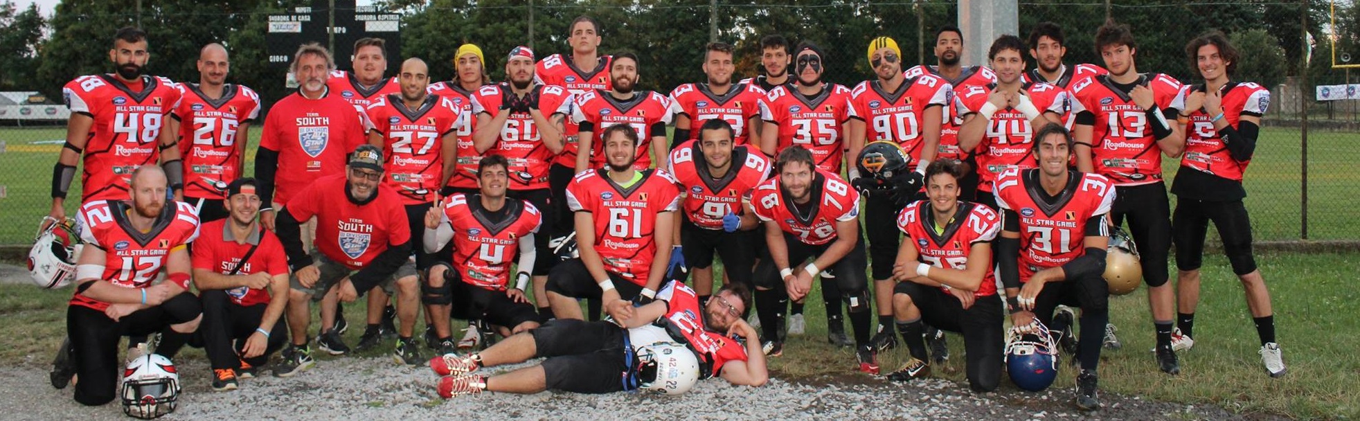 Il football americano in Italia è ufficialmente in off season da ormai una settimana, da quando iRhinos Milano si sono imposti sui Giants Bolzano nel XXXVI Italian Bowl. Non per tutti i giocatori però è vacanza:in quel di Castelgiorgio, paesino umbro vicino a Orvieto, ci si prepara da tempo per un weekend all’insegna della palla ovale. Qui si sono radunati ragazzi – e non – provenienti da tutta Italia, chi per difendere i colori della nazionale, chi per incornarsi con vecchie glorie e chi, come quattro giovani Etruschi, per partecipare all’Allstar Game 2016 della terza divisione. L’All Star Game, conosciuto anche come Probowl, è un match di fine stagione che vede contrapporsi due fazioni formate dai migliori giocatori del campionato. Nel nostro caso le due squadre hanno rappresentato le due conference di Terza Divisione, il Team South e il Team North e, al contrario dell’originale americano, hanno potuto partecipare anche i giocatori del ninebowl, che quest’anno ha visto confrontarsi Knights Sant’Agata eSharks Palermo.