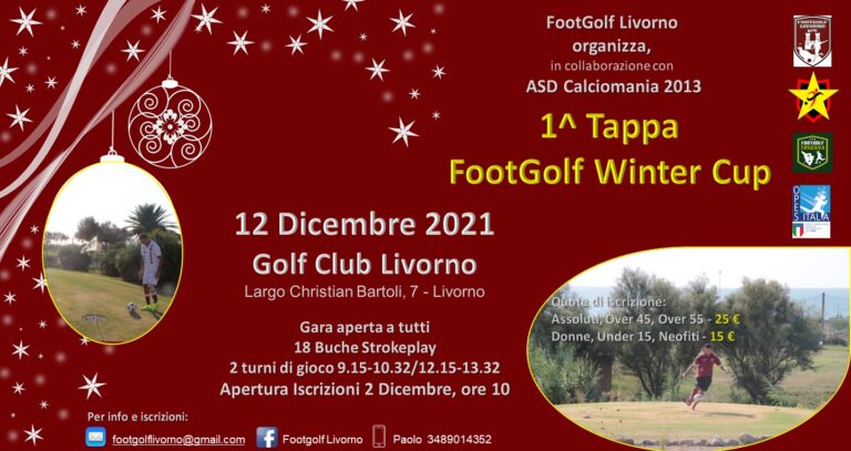 Tutto è pronto per la prima tappa del FootGolf Winter Cup che si svolgerà sui verdi prati del Golf Club Livorno di Largo Christian Bartoli, 7 in programma per domenica 12 dicembre. Per info inviare un e-mail all'indirizzo [email protected]