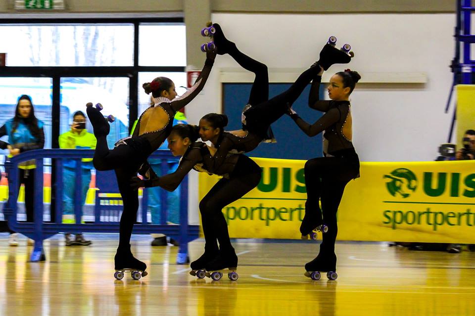 Il gruppo Pattinando sotto la pioggia: Noemi Cirillo, Emily Fina, Eva