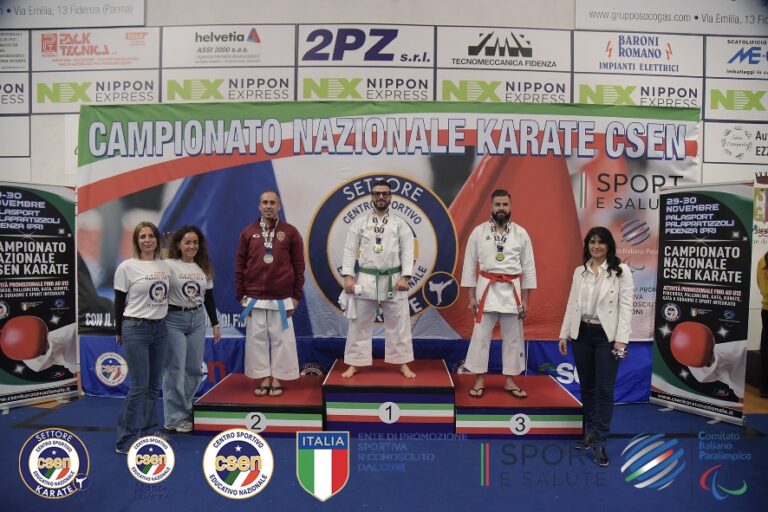 Nel kata (forma) argento per Marco Bini master maschile, Irene Machetti senior femminile, bronzo per il team kata composta da Denise Bertozzi, Emma Missiroli e Cristel Battistini.