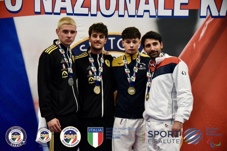 Nel kumite cinture colorate, argento per Nicole Ruotolo under12 -55kg, bronzo per Jacopo Capperi under12 -53kg, Gianfranco Esposito e Roman Gabriel negli esordienti -53kg, Greta Gigliucci cadetti +68kg, Jonathan Gentilini cadetti -57kg. Fuori dal podio quinti classificati Ginevra Cialandroni under10 -35kg, Enea Agrusa under10 -38kg, Caterina Fastami under12 -45kg.