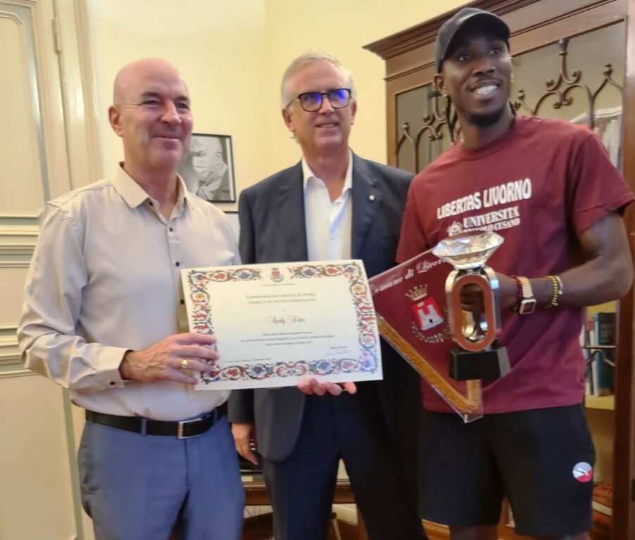 Il campione, accompagnato da Giovanni Giannone, presidente provinciale del Coni e presidente della Unicusano Libertas Livorno, ha mostrato al sindaco la coppa vinta a Losanna e dal primo cittadino ha ricevuto il gagliardetto della città di Livorno e una pergamena di congratulazioni. Questo il testo: “L’Amministrazione Comunale di Livorno esprime le più sentite congratulazioni a Andy Diaz, atleta della Libertas Unicusano Livorno per gli straordinari risultati raggiunti e per la vittoria ottenuta nella finale della Diamond League a Zurigo 2022”.