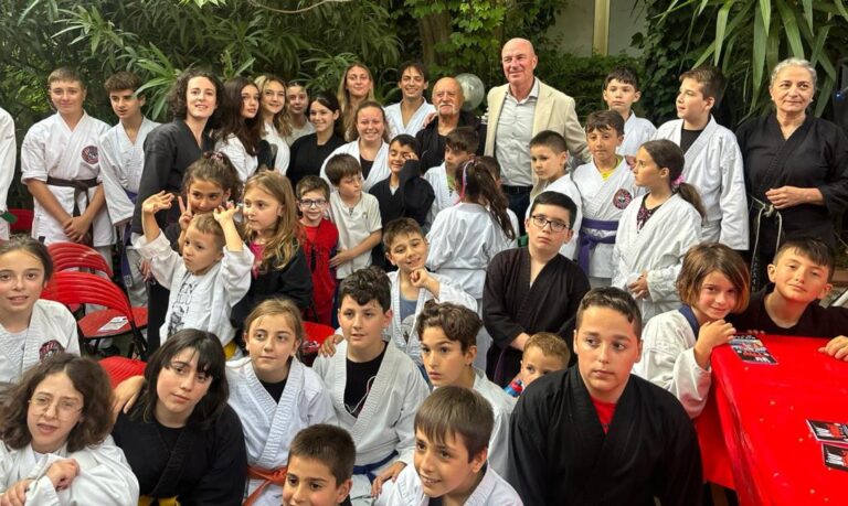 Un bellissimo giardino, un piccolo grande “popolo” di atleti in kimono, il loro pluridecorato maestro, il presidente dei veterani dello sport ed il sindaco che annuncia il progetto di un centro dedicato alle discipline da combattimento