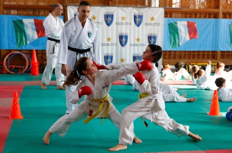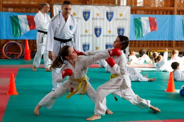 Emblematica la giornata di sabato scorso per il settore giovanile della ASD Esercito – 187 Folgore di Livorno che, nell’occasione, è stato impegnato nel cerimoniale dedicato interamente all’esame di avanzamento al grado superiore per le cinture colorate di Karate – disciplina olimpica da combattimento regolamentata dalla FIJLKAM (Federazione Italiana Judo Lotta Karate Arte Marziale) – svoltosi nella sede dell’Associazione stanziata nella palestra nella Caserma Paolo Vannucci di via dell’Ardenza. 45 i “Folgorini” candidati alla verifica, dal più piccolo a partire dall’età prescolare (4 anni non compiuti) al più grande d’età (14 anni), che nel pieno pomeriggio dalle temperature oramai estive nelle 3 ore di attività hanno dato prova delle neo capacità motorie acquisite: coordinative, generali e speciali. Per le prime i programmi e i protocolli di allenamento mirati hanno l’obiettivo di evolvere le capacità di direzione e controllo del movimento, lo sviluppo delle capacità di adattamento motorio e delle capacità di apprendimento motorio. Con la medesima importanza di crescita, le seconde, quelle speciali, inducono allo sviluppo delle capacità di accoppiamento e combinazione dei movimenti, della differenziazione cinestetica, capacità di equilibrio, di orientamento spazio-temporale, di ritmo, capacità di reazione e di trasformazione del movimento. Tutte queste argomentazioni arricchiscono il patrimonio motorio, conosciuto e denominato nell’ambiente sportivo come “alfabetizzazione motoria”, un processo di apprendimento che consente a tutti i bambini e bambine di ogni età di acquisire un repertorio linguistico-motorio, partendo dagli schemi motori, secondo ritmi di maturazione e crescita individuali ed in relazione alle opportunità offerte dall’ambiente sportivo prescelto. Insomma un “laboratorio della motricità giovanile”: così è concepita l’Associazione guidata dal presidente 1º Luogotenente Costantino Oliverio e dal suo staff tecnico – composto da istruttori militari e non, nelle figure del Graduato Aiutante Antonio CITI, Primo Graduato Daniele PILAGATTI, Primo Graduato Massimiliano PAROLIN, Rico SIMONETTI, Vincenzo CORVAGLIA, Graziano LIGAS, Giulio CITI e Jacopo PAGNI – che dedicano fuori dall’orario di servizio e di lavoro l’opera dell’insegnamento alle giovani generazioni, prossimi atleti agonisti e futuri adulti del domani, con l’obiettivo primario quello di trasmettere gli opportuni valori etici morali racchiusi nel sentimento dell’ Istituzione militare e sportivo.