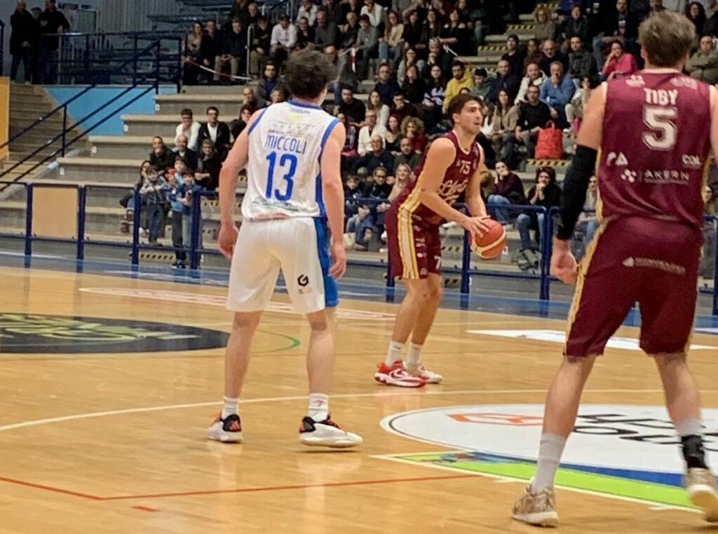 I primi due quarti sono filati sul binario dell’equilibrio con massimi vantaggi minimi da una parte e dall’altra. La Libertas ha chiuso la prima frazione sul +5 (14-19), ma Ruvo è sempre rimasta attaccata e all’intervallo lungo gli Amaranto erano ancora avanti di 3 (41-44) grazie ad un ottimo Valentini (per lui alla fine della partita saranno 29 punti con 10/14 dal campo). Nel terzo quarto il patatrac. Libertas a +7, ma solo apparentemente in controllo, perché Ruvo ha cambiato marcia. Ha perfezionato l’aggancio a quota 59 e poi ha allungato fino al 77-66 del 33’. Coach Diana ha fatto ricorso alle alchimie difensive per ricucire lo strappo, ma quattro tiri liberi falliti e hanno rallentato la rimonta che si è arrestata sul -2 (altra tripla fantascientifica di Valentini) sull’85-83 a 30” dalla sirena prima che un canestro assai fortunoso di Brooks mandasse in archivio la partita.