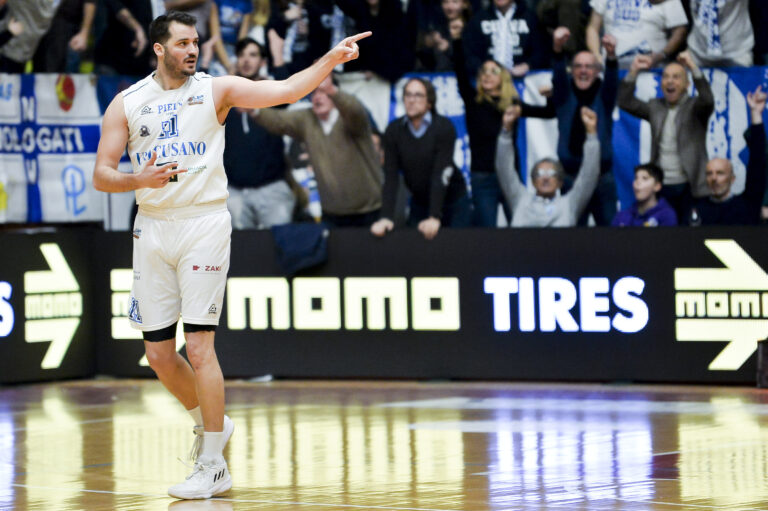 L’equilibrio continua a regnare sovrano anche nella terza frazione, mentre l’atto decisivo è un monologo bianco e azzurro. La Pielle dimostra il come poter vincere le partite, anche quando la serata da 3 punti non è particolarmente felici. Con pazienza e qualità trova canestri a difesa schierata, in particolare con Lenti (movimenti da categoria superiore) e Graziani (4 punti di fila per mettere la freccia). Al suono della sirena è festa in mezzo al campo e in curva. Prossima fermata Piombino.