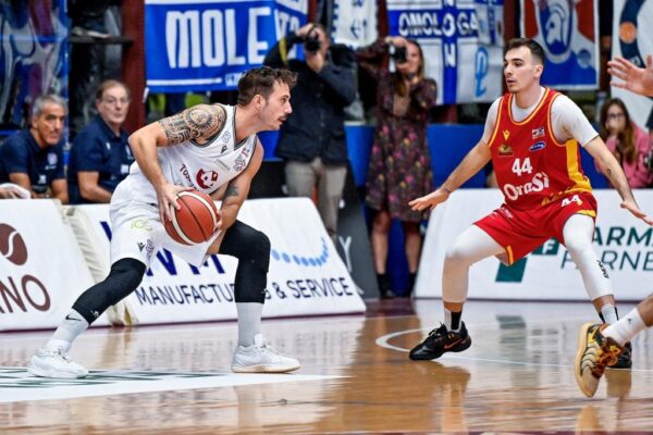 Avvio in salita a Chieti per la banda di Campanella che nel primo quarto va sotto di 12 punti (22-10) e ad inizio ripresa dopo due minuti si trova sotto del pesante passivo di 33-14. La Pielle prova a reagire e in parte ci riesce grazie alla spinta di Leonzio e Paesano che riportano i biancoblu a -11 (40-29) a 4 e spiccioli dall’intervallo. Poi Cepic mette il 41 a 33 ma Chieti riallunga subito con una bomba di Van Ounsem: 44 a 33. Si chiude la prima parte sul punteggio di 47 a 39 con una Pielle che ha ricucito in parte lo strappo iniziale.