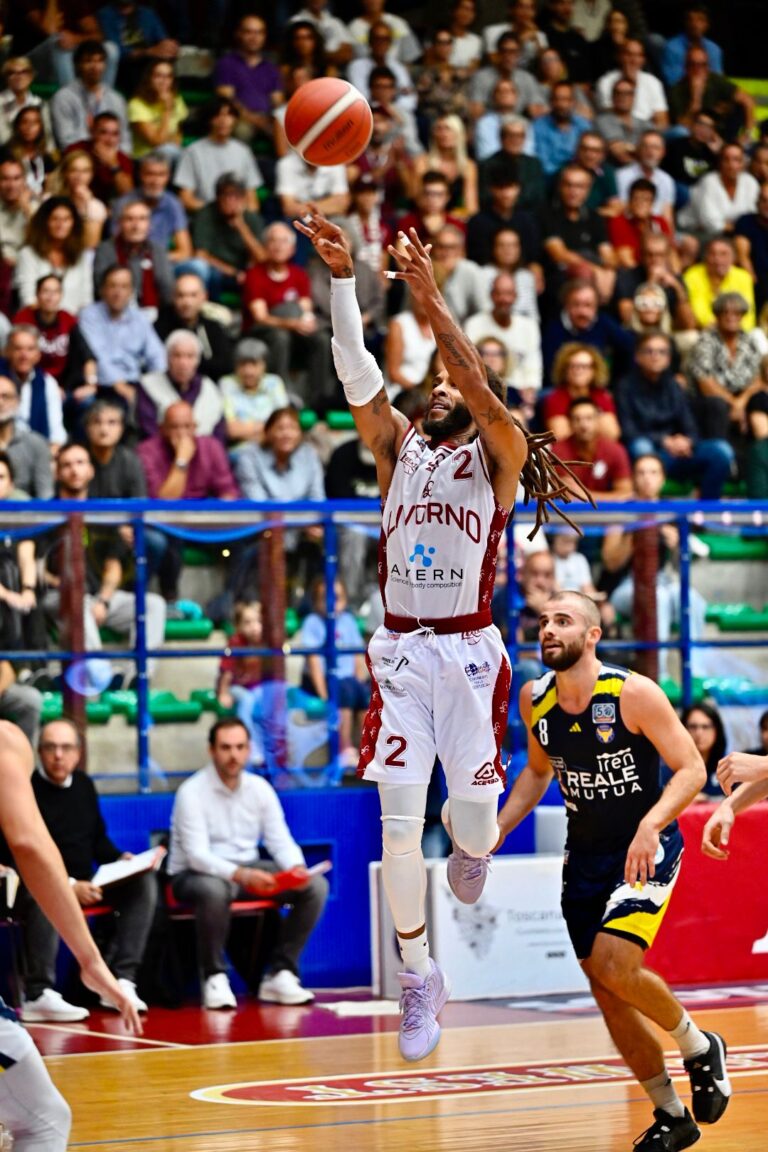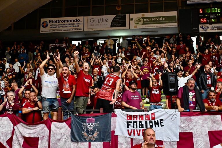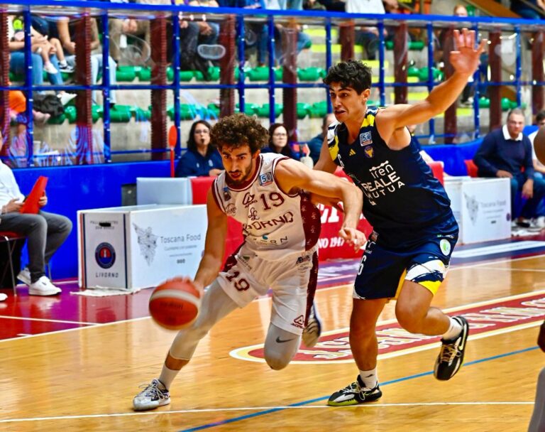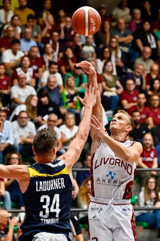 Se al PalaMacchia in questa prima di A2 la Nord recita che “uscimmo a riveder le stelle”, sul campo è senza dubbio una “selva aspra e forte” per utilizzare la stessa metafora usata dagli Sbandati e dell’Associazione Tifosi Libertas per la bellissima coreografia dantesca che ha riempito gli spalti prima della palla a due in questo ritorno in serie A2 del basket livornese. I primi due quarti sono di stampo ospite dove la Reale Mutua Torino non si mette i guanti e dà il benvenuto agli amaranto impartendo un gap di 25 a 43 all’intervallo lungo. Se nei primi 10 minuti la LL ci prova grazie a un buon Banks e a capitan Fantoni che tiene dritta la barra (15-24 il primo tempino), nella seconda frazione gli amaranto si sciolgono come neve al sole sotto le bocche da fuoco degli ospiti che sbagliano poco, pochissimo soprattutto dall’arco.