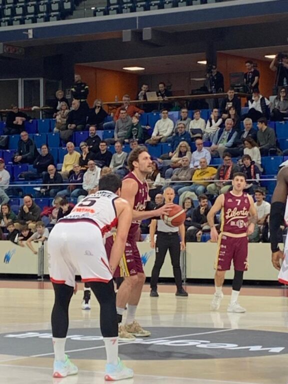 Orgoglio amaranto – Quando la partita sembra indirizzata, la squadra labronica prova l’ultimo assalto. Filloy colpisce due volte dall’arco, Woodson attacca il ferro con personalità, Tiby continua a lottare sotto canestro. Penna infila la tripla del -8, poi Woodson realizza la bomba che riporta la Libertas a un solo possesso (69-66) a meno di un minuto dalla sirena.