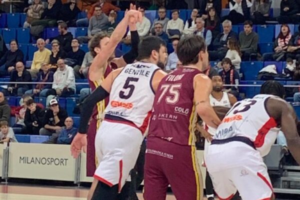 Avvio in salita – L’impatto della gara è tutto di marca milanese. Gentile sblocca il punteggio, Cavallero e Morse allungano, mentre Taylor si accende subito dall’arco. La Libertas fatica a trovare ritmo offensivo e scivola presto sotto in doppia cifra. Tiby prova a tenere viva la squadra con energia e viaggi in lunetta, ma al 10’ il tabellone dice 23-10.