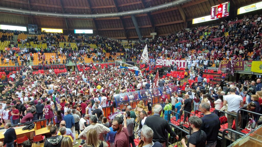 Si chiude con il risultato di 76 a 52. Esplode la festa amaranto sugli spalti e in campo. Contestazione dei tifosi Pielle a fine gara.