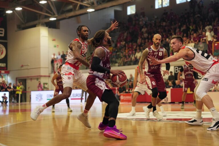 Debutto amaro per la Libertas sul campo di Cento. Gli amaranto dopo un primo quarto pressoché perfetto (27 punti segnati, 80% nei tiri da 2, massimo vantaggio di + 13 sul 22-9) denunciano qualche pausa di troppo in difesa e i padroni di casa – sospinti da un super-Alessandrini da 14 punti a cavallo tra il primo e il secondo quarto – tornano in partita (36-39 all’intervallo lungo). La sfida si decide nella seconda parte dove c’è spazio anche per una tripla di tabella di Sperduto, segno evidente che mentre la Libertas si inceppa in attacco, a Cento va tutto bene. C’è un primo allungo della Benedetto XIV (66-53) rintuzzato dagli amaranto (66-59) prima che sulla Libertas si abbatta il tornado Carlos Delfino. L’argentino con 9 punti consecutivi manda al macero le residue speranze di rimonta dei ragazzi di Andreazza (75-59) i quali nel finale addolciscono il passivo. Finisce 83-72 per Sella Cento.