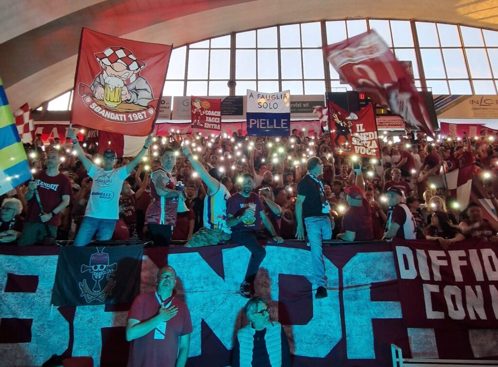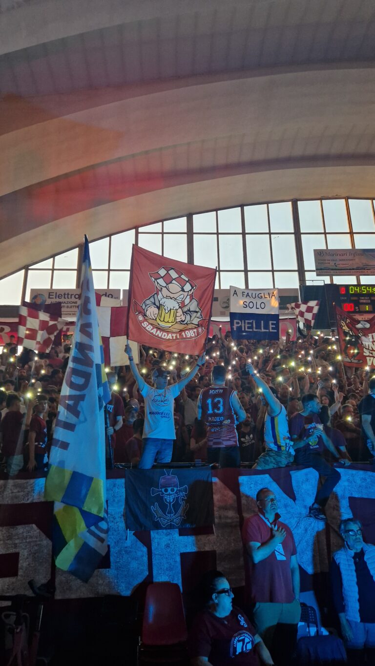 Terzo quarto che si apre con la Libertas che controlla il cospicuo vantaggio ottenuto nei primi 20 minuti anche se qualche tiro di troppo finisce sul ferro. A metà della terza frazione il punteggio recita 48 a 33 (25′) grazie ad una bellissima tripla di Ricci imbeccato da Fantoni nell’angolo. Allinei allunga: 50 a 33: +17 al 26′. Il quarto sfila via senza troppi patemi d’animo per la Akern che chiude la ripresa sul 53 a 37. Suli spalti, in curva Sud, avvistati anche i campioni della Pielle: Lo Biondo e Rubbini e Ferraro.