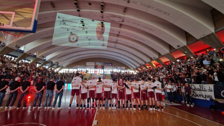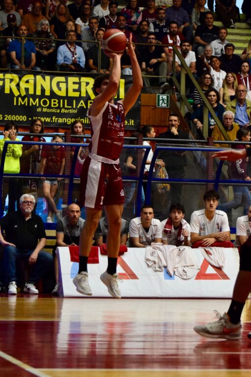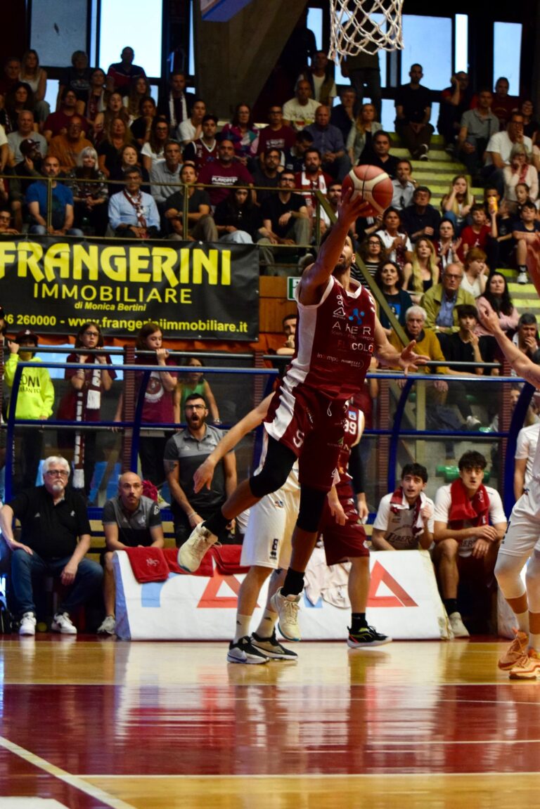 Primo quarto che si apre nel segno della doppia L con Fantoni e Ricci che portano subito avanti gli amaranto per 4-0 dopo 2 minuti. Grande cornice di pubblico per questo martedì 21 maggio al PalaMacchia. Dopo poco ci pensa Allinei che allunga con una bomba: 7-0. Grande penetrazione di Ricci che mette il 9 a 3 appoggiando a canestro. Allinei con grinta si prende un tiro dalla media per l’11 a 3 a metà primo quarto. Jesi in 6 minuti a segno solo con una tripla di Rossi. Ottima difesa come sempre per gli amaranto. Ancora Allinei dalla lunga!!! Incredibile inizio per il 19 amaranto!