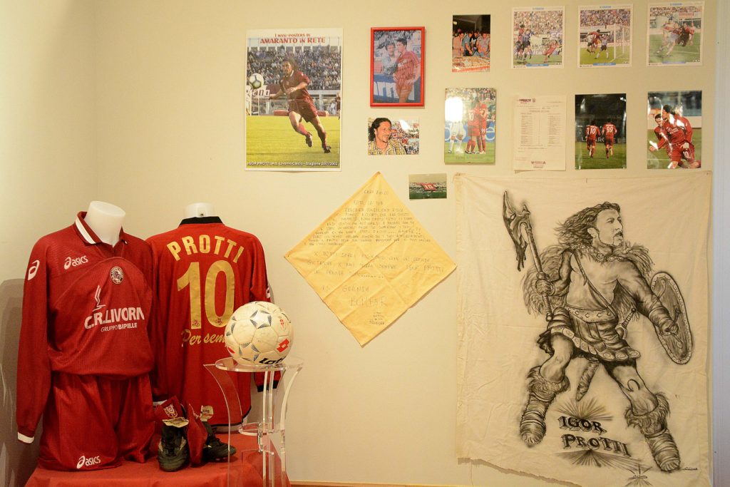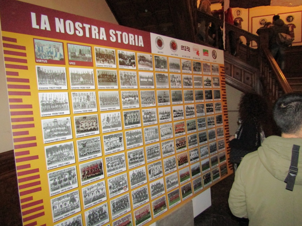 Non mancano sezioni speciali con gli storici figurini e divertenti caricature di giocatori, nonché curiosi gadget del Livorno che vanno dalle storiche mascotte alle bottiglie di vino. Sulle pareti delle sale espositive numerose foto delle varie formazioni succedutesi negli anni, immagini di trasferte, goal memorabili e poi quadri, manifesti e locandine della Società. Fanno da fil rouge della mostra, quasi ad “accompagnare” il visitatore in questo viaggio nella storia del Livorno Calcio, 30 manichini con indosso le maglie della squadra: da quelle di inizio ‘900 come la maglia “ Virtus Juventusque” fino ai giorni nostri.