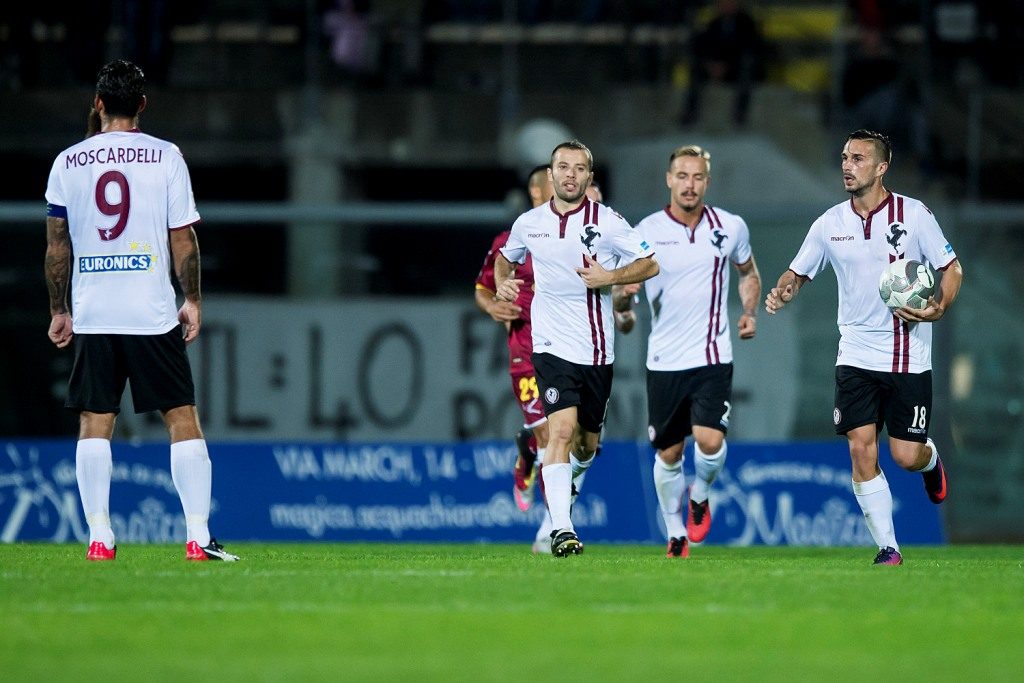 Arezzo: Benassi, Luciani, Muscat, Sirri, Masciangelo, Arcidiacono (70′ Solini), Foglia, De Feudis (80′ Demba), Yamga (74′ Rosseti), Polidori, Moscardelli. A disp: Borra, Garbinesi, Milesi, Sabatino, Corradi, Ba, Grossi, Bearzotti, Erpen. All. Sottili