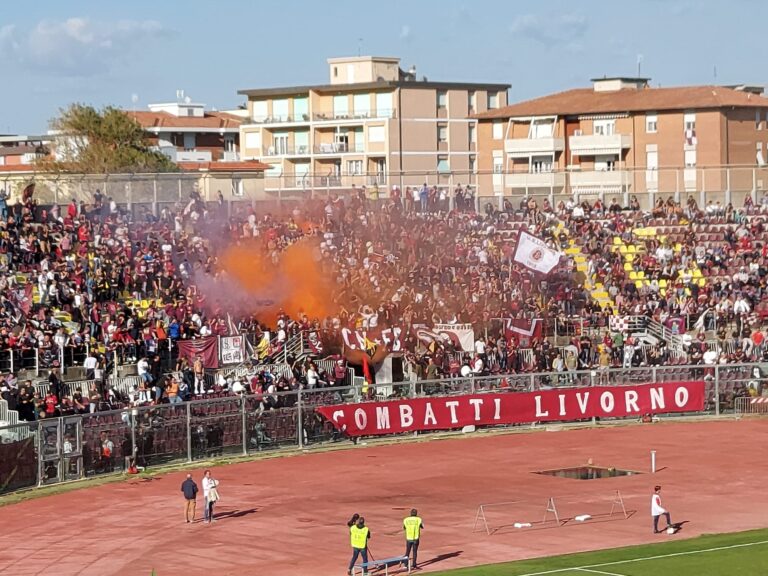 L’Us Livorno 1915 trionfa anche in casa contro il Fucecchio per 3 a 1 (clicca qui per leggere cronaca, pagelle e interviste). Tornano a sventolare le bandiere amaranto in Curva Nord. Torna a ruggire lo spicchio di Armando Picchi dedicato agli ultras. Novanta minuti di una sola voce che si alza al cielo impastando l’amaranto con l’azzurro di una tersa domenica di ottobre. Lo speaker torna a gridare i soprannomi sulle note dell’inno della gloriosa Unione Sportiva Livorno. “Bel colore di nostra divisa… non piegare un istante giammai” e giù le mani a battere forte a dare ritmo ai cuori che all’unisono saltano insieme sui gradoni della curva che gli stessi tifosi hanno intitolato a Fabio Bettinetti.