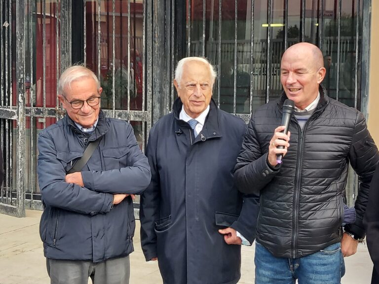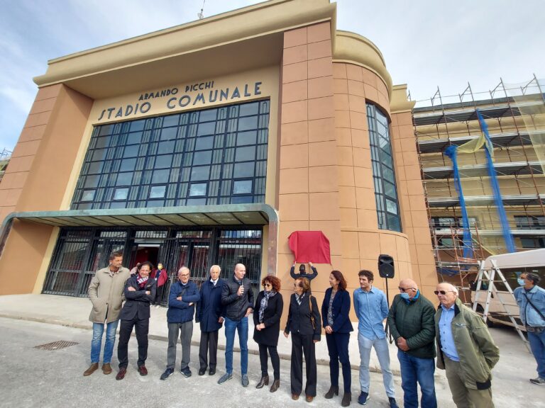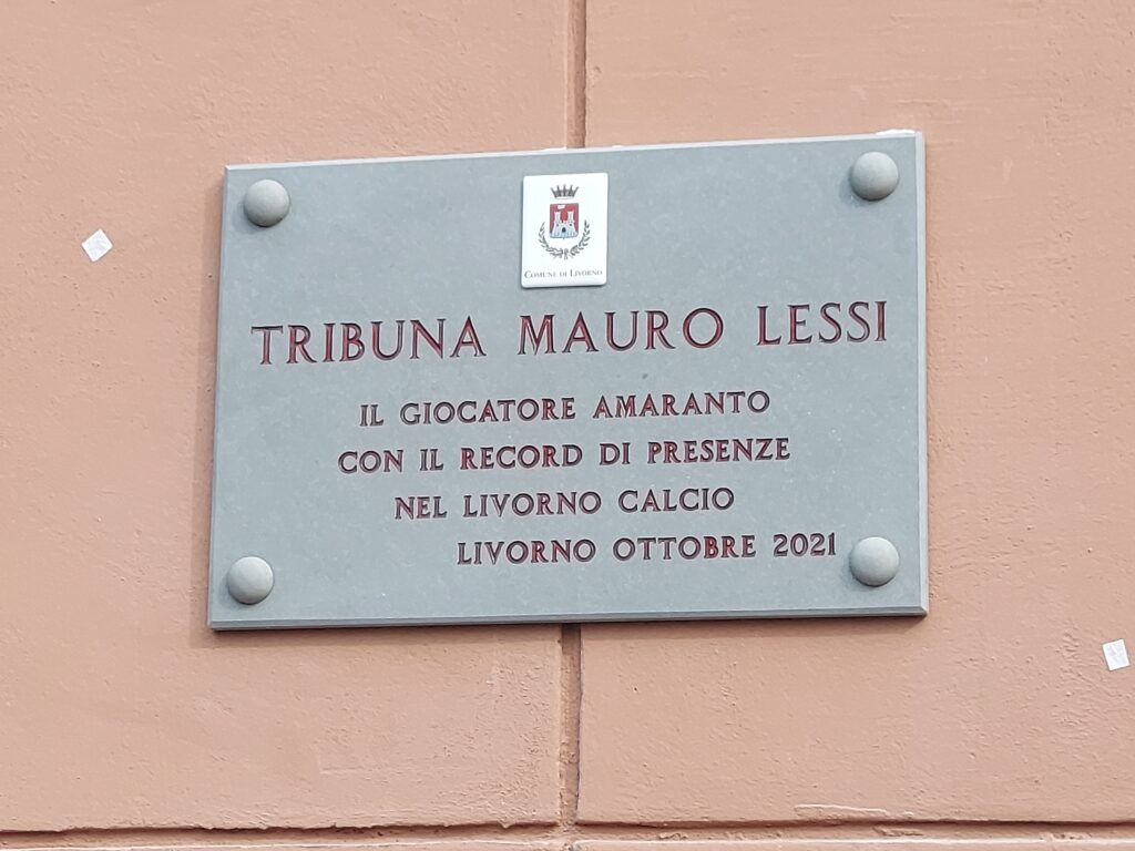 Prima dell’inizio della gara, alla presenza del sindaco Luca Salvetti, di Igor Protti e dei familiari di Mauro Lessi, è stata scoperta la targa che sancisce ufficialmente l’intitolazione della tribuna dell’Armando Picchi al recordman di presenze amaranto (nelle foto sotto a quella principale alcuni momenti della cerimonia).