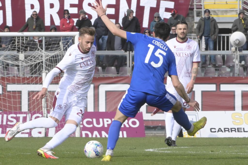 Occasione persa per Luci e compagni che si debbono accontentare di un pareggio. Non basta la rete di Bruzzo che di testa porta in vantaggio i padroni di casa. Al gol degli amaranto replica Anello per il pareggio.