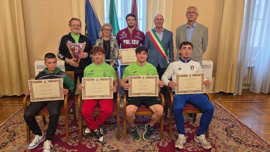 Si è tenuta questa mattina nella Sala Cerimonie a Palazzo Comunale, la cerimonia di consegna di sei pergamene agli atleti del New Popeye Club che si sono distinti ai campionati italiani di lotta libera conquistando il gradino più alto del podio in varie categorie.