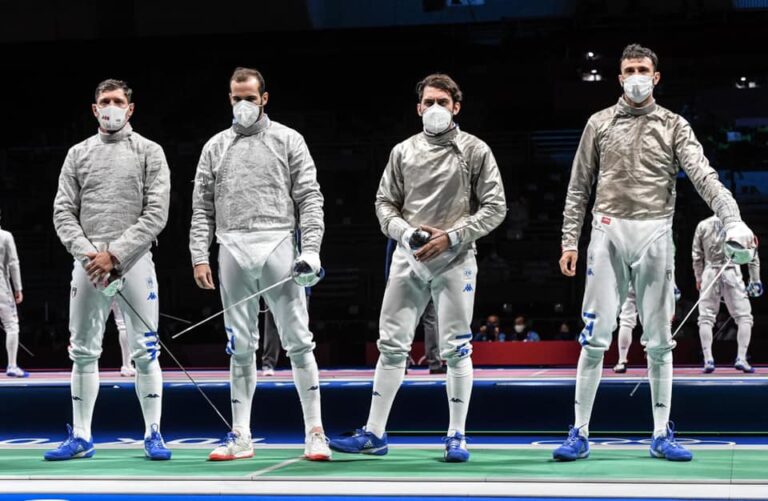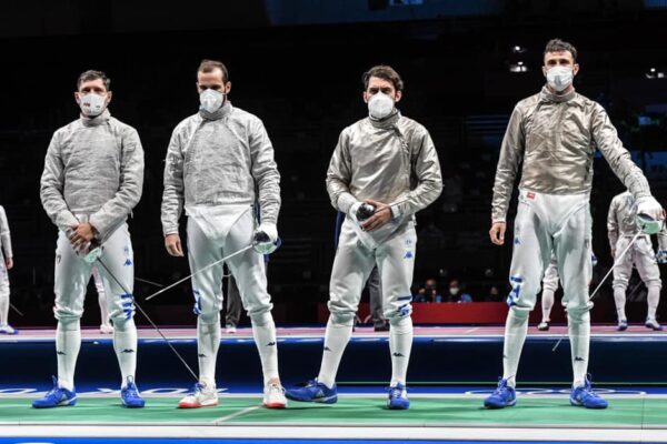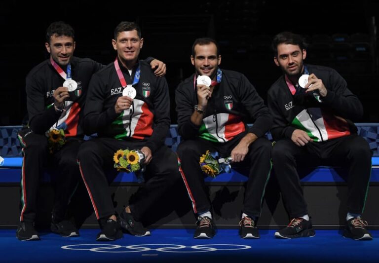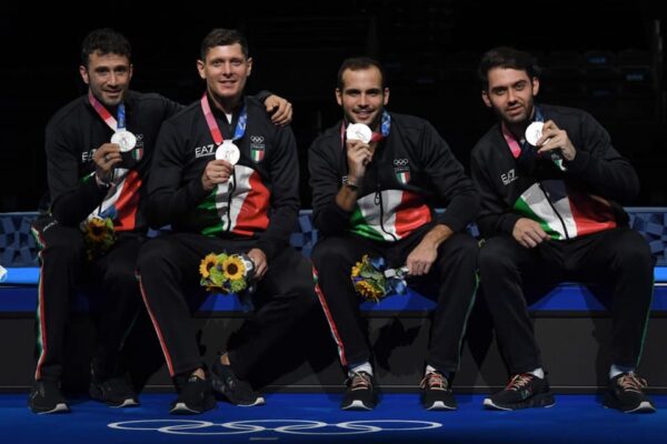La medaglia olimpica al collo (la numero 99 per la nostra città) Aldo Montano (nelle foto di Augusto Bizzi in diretta da Tokyo), arrivato oggi alla sua quinta olimpiade consecutiva, è riuscita a mettersela. Lo sciabolatore livornese, dopo aver trascinato la squadra della sciabola azzurra in semifinale contro l’Ungheria, si arrende insieme ai suoi compagni al predominio della Corea del Sud che si impone nella finalissima per l’oro con il risultato di 26 a 45. Per lui è un argento scintillante che si aggiunge al suo già grandissimo palmares a cinque cerchi composto già da un oro (nell’individuale) e un argento a squadre guadagnati ad Atene nel 2004, al bronzo a squadre di Pechino 2008 e a quello, sempre a squadre, di Londra 2012.