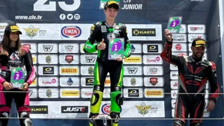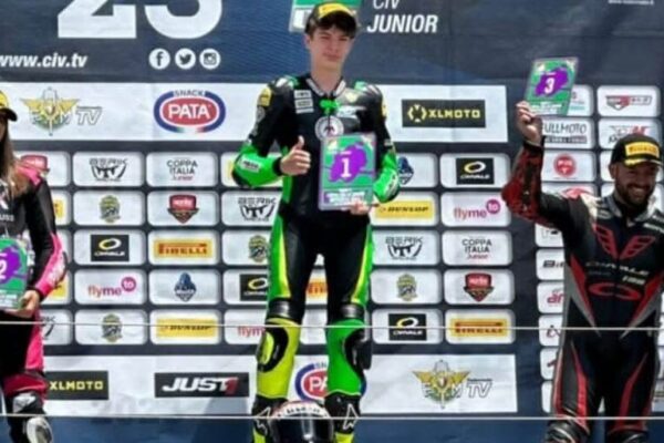 Weekend dunque molto positivo in cui il centauro livornese porta a casa una pole position, un 1° posto e un 2°posto e la targa di leader di campionato. “Ringrazio gli sponsor – commenta il giovanissimo rider – che senza di loro non potrei fare questo sport e tutti quelli che mi seguono e mi sostengono sempre, il mio meccanico Stento e i miei genitori”.